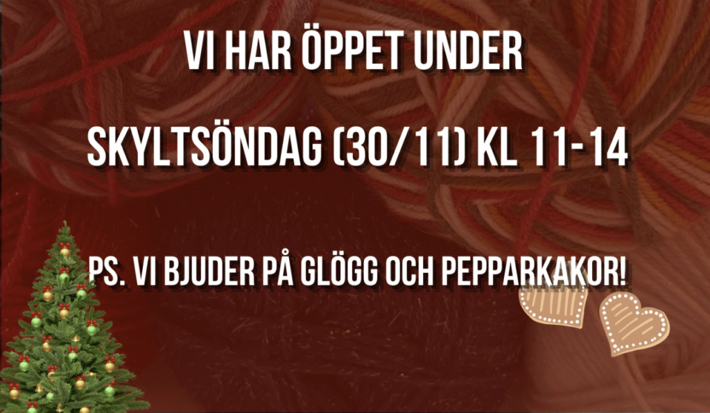 Söndag 30/11 är det dags för skyltsöndag och dagen till ära har vi extraöppet mellan 11-14. Vi bjuder på pepparkakor och glögg!